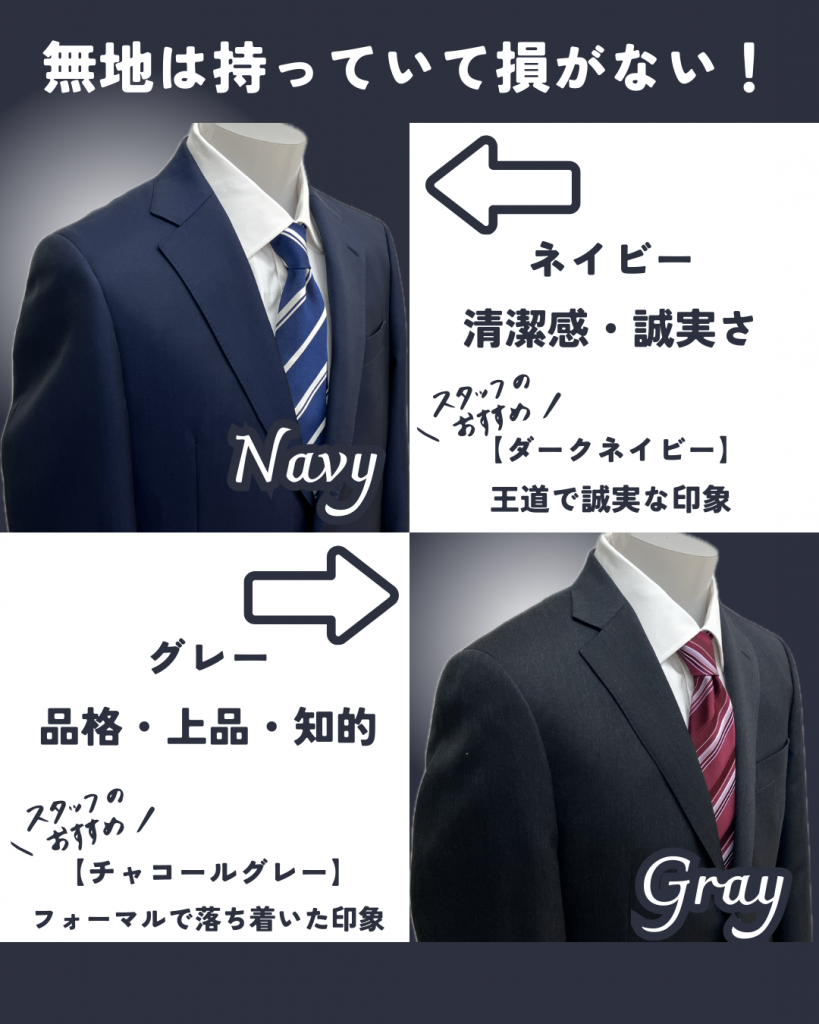 【ネイビー】または【グレー】の無地がまずおすすめです。