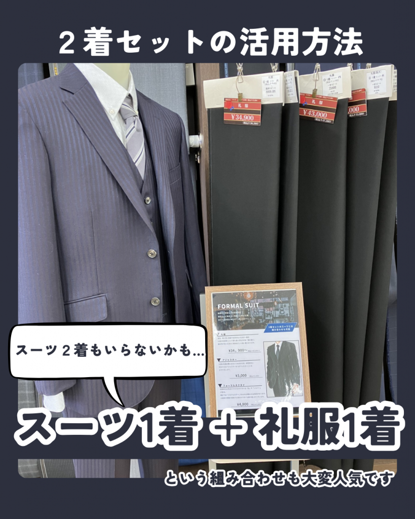 当店のスーツは2着 ¥39,800(税込¥43,780)〜 ご用意しております。